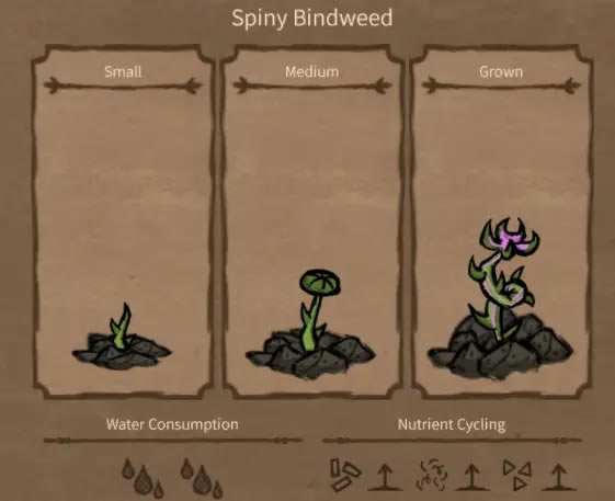 An aggressive,invasive species that will invade your own space when provoked.-W 看到它请立刻铲除! 看到它请立刻铲除! 看到它请立刻铲除! 旋针刺花成熟之后会在你采收农作物或者铲除杂草时使用荆棘攻击你,造成10点伤害然后用荆棘把你围住,荆棘血量是50点,中间的生物离开就会消失,打死一条藤蔓就会让所有藤蔓消失,虽然伤害不高,但是这东西是真的烦人,好在它的二阶段十分容易辨识,生长周期也是整整四天,所以农场主肯定有足够的时间来铲除这些烦人的花 本次分享游戏《饥荒联机版》攻略。 |