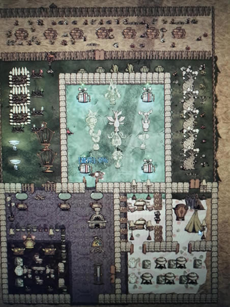 《饥荒:联机版》是一款由Klei Entertainment发行的冒险生存类游戏。2022年3月,开发商Klei宣布,《饥荒:联机版》4月12日登陆Switch平台。 饥荒联机版是一款生存开放世界游戏,所以建家是新手要做的事之一,很多新手玩家对建家其实不太了解,不知道该怎么建好,下面一起来看看新手建家思路推荐吧。 总览 大致是采用他“中间月岛,两侧绿地,底下生活区,顶上养蜂场”的思路来改善,其实说真的我自己也不知道最后有没有达到预期效果,毕竟和自己平常的基地风格不太一样,因此在这里献丑了