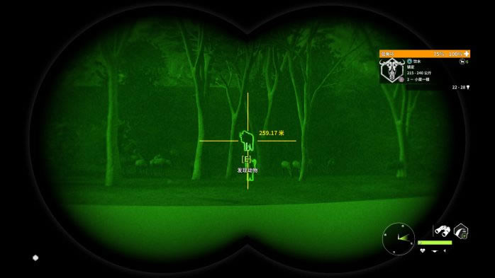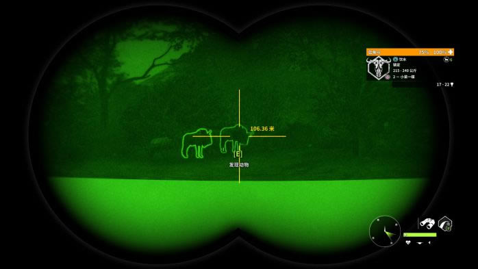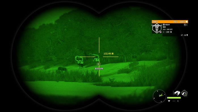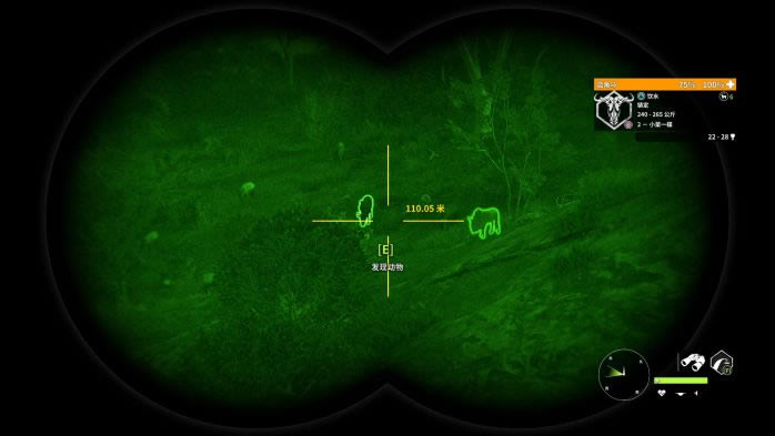 对于夜间的猎取,装备的选择就尤为重要,毕竟夜间视线不好,远距离或树荫下的猎物无法在短时间内看清并标记,因此楼主建议大家先去Steam购买“HIGH-TECH HUNTING PACK”DLC,然后根据实际需求装备。对于夜间猎取蓝角马,楼主只带了夜视望远镜和瞄准镜。