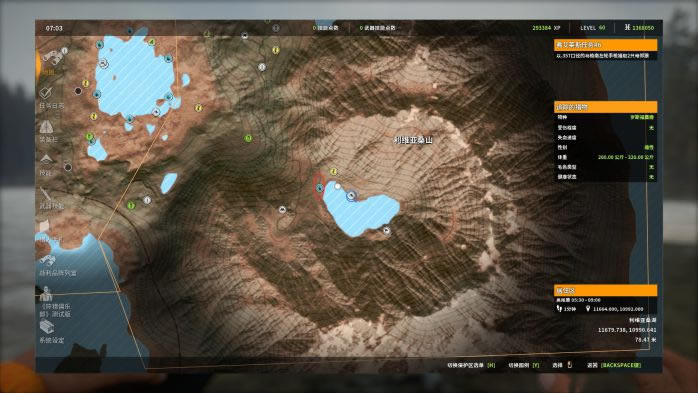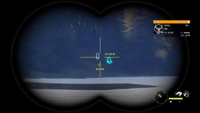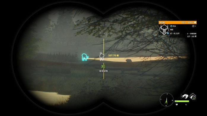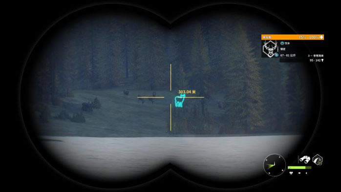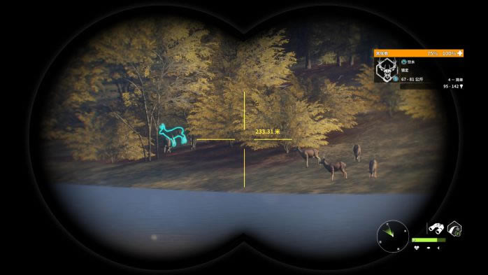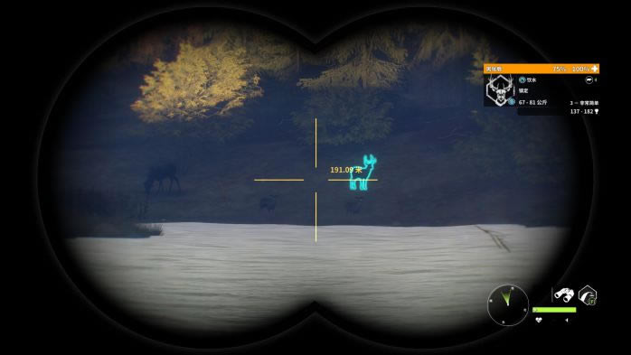 黑尾鹿是莱顿湖区特有的动物,有三种稀有毛色:带花斑,白化和黑化,其中黑化和白化极其稀有! 下面我先对黑尾鹿做一个总体的评价(评价标准:较低,一般,中等,较高)。 1.猎取难度:较低; 2.最大体重区间:81-95Kg; 3.警惕性:雌性较低,雄性一般(5级满级的黑尾鹿警惕性较高); 4.生活习性:群居活动; 5.饮水地点:相对集中; 6.血量:一般; 7.枪械选择:M1(推荐!),7mm,30-06; 8.弹药选择:软尖弹; 9.推荐射击部位:肺部(以正侧面为参考标准,射击前腿后方胳肢窝处效果最佳!); 10.仿声哨:“咩咩”仿声哨; 11.饮水时间:5:30-9:00;19:00-21:30。 同样的,时间调到5点30分,在原地等15-20分钟,也就是5:45左右再“飞”。