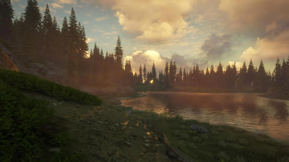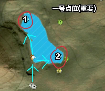 1. 一号位置: 兽群稳定性:高 发现难度:低 推荐程度:非常推荐 此处位于地图西南,湖面开阔视野良好。是狩猎欧洲野牛的黄金点位之一。 从帐篷出发,走到湖泊西南部的岸边,直接隔湖观察1号和2号点位的牛群,完成击杀即可。