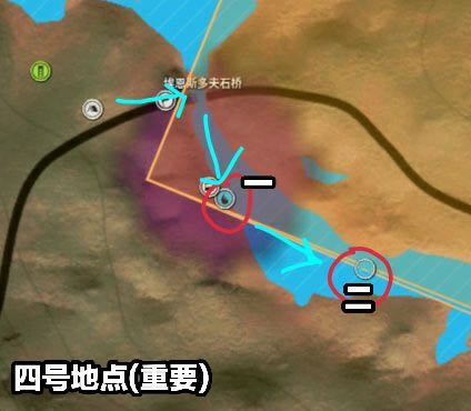 4. 四号点位 兽群稳定性:高 发现难度:低 推荐程度:非常推荐 石桥是一个很有趣的地方,属于欧洲野牛的一大聚集区。而且视野非常好。 从帐篷出发,直接上石桥,去的时候轻手轻脚些,注意不要吓跑牛群。从桥头观察一点,完成击杀,然后下桥(注意不要一激动直接蹦下去摔个半残 ),然后上树架观察二号点,完成击杀。