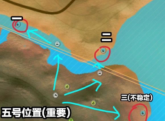 5. 五号点位 兽群稳定性:高 发现难度:中等 推荐程度:比较推荐 此处位于石桥所在的湖泊下游,野牛群庞大,但树木太多,观察起来有一点点不易。不过还是很值得去的地方。 帐篷出发,直接去三脚架观察一号点。再去观察二号点(这个点树丛很多很密,牛群可能的分布范围大,三脚架不一定能观察到牛群,建议徒步摸过去观察)。 如果想的话,再去观察三号点(这个位置非常的不稳定,我自从在这儿干掉了一头落单的牛以后,这个地方就再也没出现过牛)