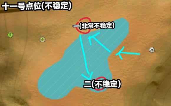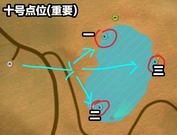 10. 十号点位 兽群稳定性:高 发现难度:大 推荐程度:很推荐 这个湖算是狩猎野牛的准黄金点位,野牛群数量很多 但问题在于,湖边的树丛很多很密,隔湖观察,不一定能观察的很到位,很多时候需要摸过去。 直接前哨站出发,分别观察1/2/3点位即可。 补充:这个湖可能还有第四个潜在的饮水点。位于湖泊西岸,一开始的箭头指向的位置,去的时候请多留个心眼。