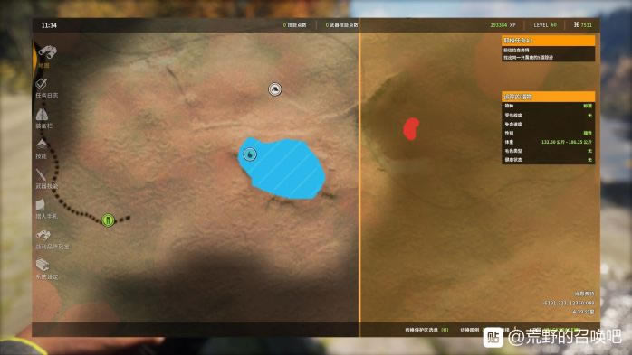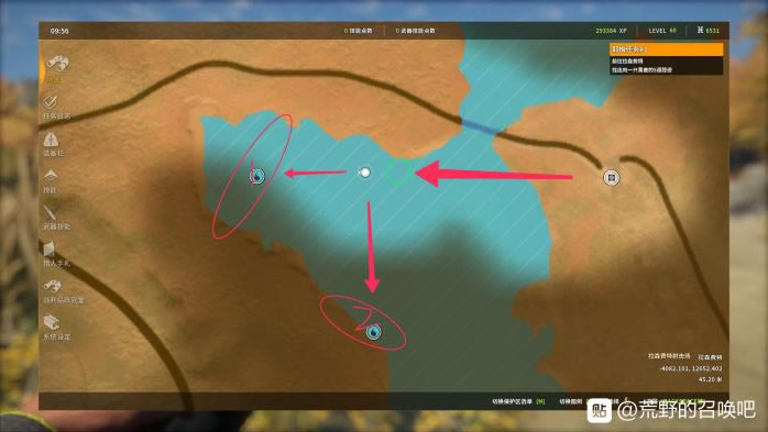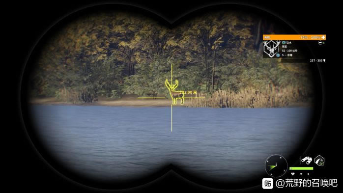 5. 【饮水处5】此处走出帐篷,站在河边即可看到对岸的鹿群,可能存在两个鹿群,分别在图中饮水点处与绿色猎物标记处(绿色猎物标记处常为单独的雄鹿),右边鹿群常在草丛内饮水,但对鹿角的判断不构成障碍,若想看清鹿群全貌,走到河边吹哨即可。左边鹿群无视野遮挡,距离较远。