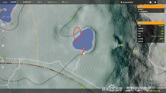传送到帐篷红色箭头跑,即将到达岸边时观察点位,两个圆圈其实为一个点位,一般会刷1-2头驼鹿,多数情况只刷一头在近帐篷岸边并且容易被树木遮挡,所以离岸100米左右步行观察,这个点位较为稳定,50%几率刷新。