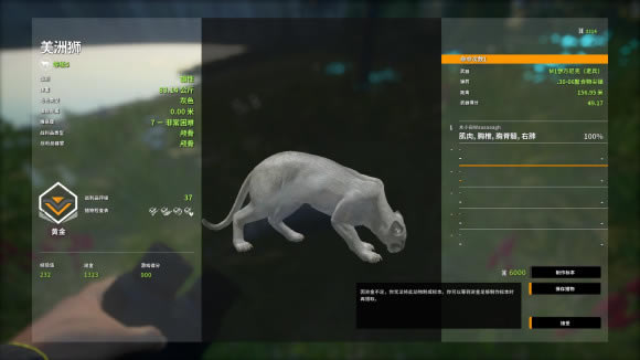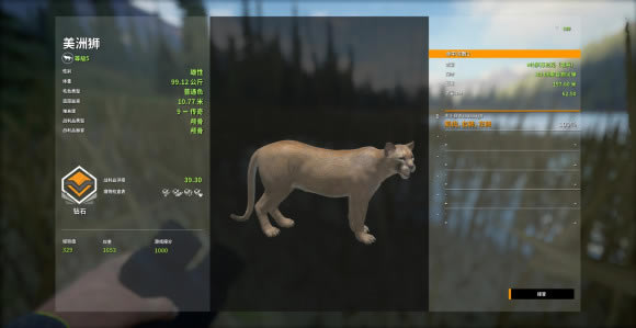 美洲狮是北美大陆一种独特的猫科动物,因为其优秀的出钻率,精良的异色,脆弱的血皮,是萌新在开图后不错的刷钱选择。该物种在本图中的饮水点大多分布于前哨站附近,可以节约很多用于购买帐篷的游戏币,便于萌新们攒钱去打自已喜欢的猎物,并且点位稳定,不会出现巨大变动。打马枪也没有关系,美洲狮惊吓后容易呆在原地,便于萌新学习远程定位射击,是很优秀的入门动物。 此外美洲狮雌雄都有收藏价值。 1.毛色种类 普通 深红:毛色相对于普通色较深 灰色:灰色的毛皮,其余地方与普通美洲狮无区别 白化:有白色的毛皮,粉色的鼻子和脚垫 黑化:完全黑色的毛皮 注意:灰色和白化会很难区分,建议遇到后仔细观察
