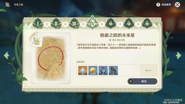 《原神》是由上海米哈游网络科技股份有限公司制作发行的一款开放世界冒险游戏,于2017年1月底立项,原初测试于2019年6月21日开启,再临测试于2020年3月19日开启,启程测试于2020年6月11日开启,PC版技术性开放测试于9月15日开启,公测于2020年9月28日开启。 原神寻星之旅第四天已经开启,部分玩家可能还不清楚今天的未来星在哪,下面一起来看看原神寻星之旅第四天未来星点位分享吧。 原神寻星之旅第四天未来星点位分享 1.领任务,找到观察点 1.1.领任务: