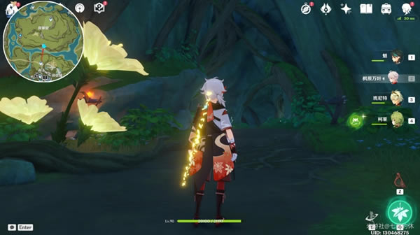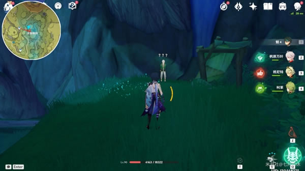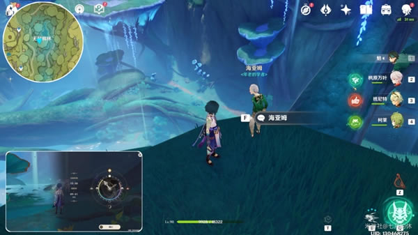 最后 把游戏时间调到第二天(点派蒙头像),借助风场上来,在西南方向这个山坡上与海亚姆对话,获得隐藏成就【众花园中的一颗核桃树】