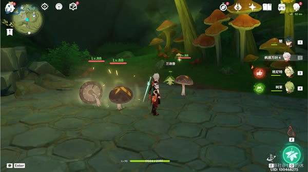 4.前往海亚姆所在地点 5.调查新生的植物 6.返回海亚姆的营地,过完剧情,即可领取任务奖励。 二、兰伽鲁涂鸦 任务奖励:30原石+22000摩拉+2本大经验书 任务流程: 1.在茸蕈窟南方向这个洞口,打败镀金旅团,继续往洞口里走
