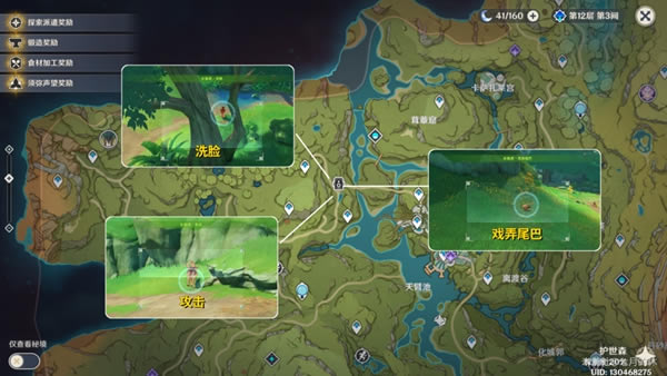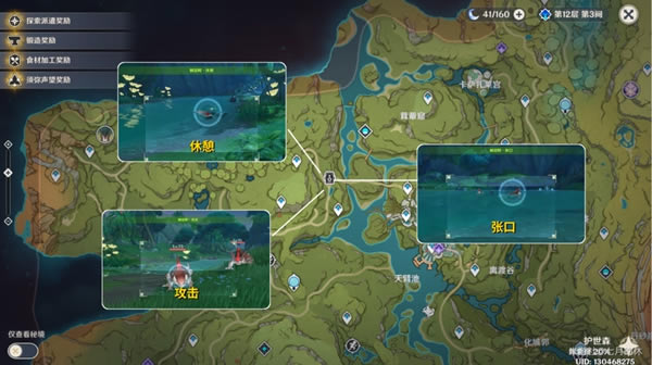 《原神》是由上海米哈游网络科技股份有限公司制作发行的一款开放世界冒险游戏,于2017年1月底立项,原初测试于2019年6月21日开启,再临测试于2020年3月19日开启,启程测试于2020年6月11日开启,PC版技术性开放测试于9月15日开启,公测于2020年9月28日开启。 原神雕琢童心第三阶段的活动已经开启,部分玩家可能还不清楚怎么做,下面一起来看看原神雕琢童心第三阶段攻略汇总吧。 原神雕琢童心第三阶段攻略汇总 掠影拾真(第三关) 需要拍照动物3种动物行为,这些动作都是有时间限制的,不会维持很久,所以捕捉到行为时,赶紧拍照,会有文字提示。 耗耗驼兽:休憩、进食、攻击 棘冠鳄:休憩、张口、攻击 长鬓虎:戏弄尾巴、洗脸、攻击 除了攻击,需要主动攻击动物,注意伤害不要过高,直接变肉了,其他两种行为都可以直接拍。 耗耗驼兽位置