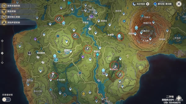 履险如夷(第三关) 可以利用的buff:在「履险如夷」挑战中,当前场上角色触发原激化、超激化、蔓激化、绽放、超绽放、烈绽放或燃烧反应时,会在触发元素反应的位置释放一次冲击波, 造成真实伤害。该效果每2秒至多触发一次。 元素反应类型: 水→草=绽放→草元核、火→草元核=烈绽放、雷→草元核=曼生弹 雷→草=原激化、雷→原激化=超激化、草→原激化=曼激化 火→草=燃烧 带个草元素角色,然后随便带个水、火、雷元素角色即可吃到buff。 5个挑战位置总览 就是打怪,每波12个小怪,建议个聚怪角色,很简单,可以快速刷材料!