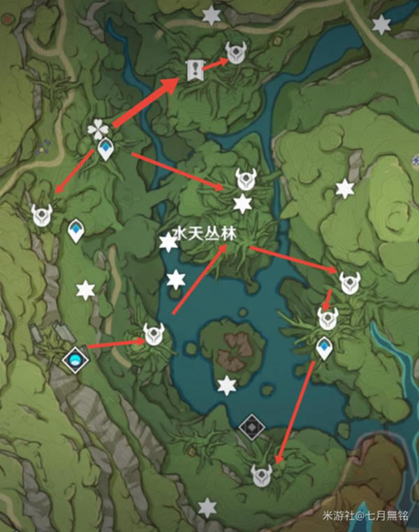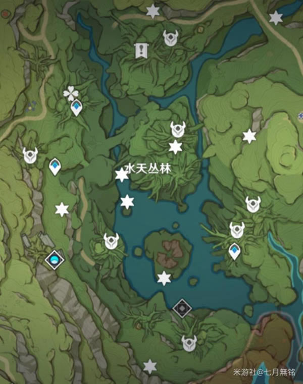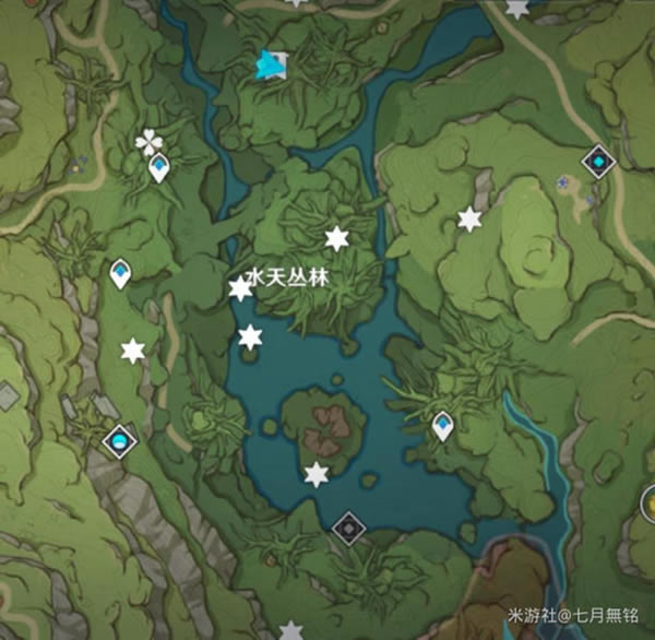 《原神》是由上海米哈游网络科技股份有限公司制作发行的一款开放世界冒险游戏,于2017年1月底立项,原初测试于2019年6月21日开启,再临测试于2020年3月19日开启,启程测试于2020年6月11日开启,PC版技术性开放测试于9月15日开启,公测于2020年9月28日开启。 原神中我们找到水天丛林所有蘑菇后可以获得一个华丽宝箱奖励,部分玩家可能还没找全,下面一起来看看原神水天丛林蘑菇位置大全吧。 原神水天丛林蘑菇位置大全 从传送锚点直接飞到这个位置就知道还有哪个没点亮的