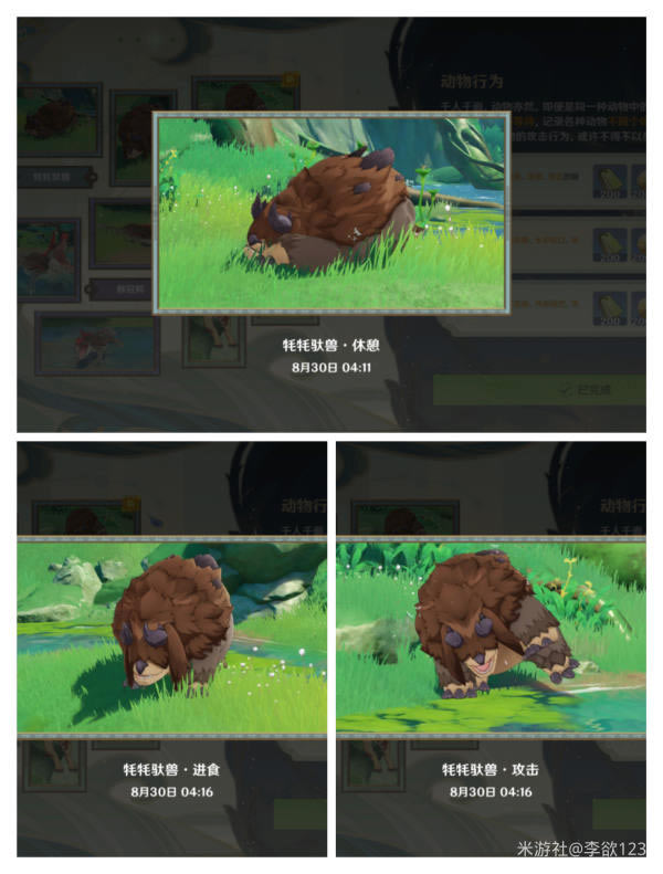 《原神》是由上海米哈游网络科技股份有限公司制作发行的一款开放世界冒险游戏,于2017年1月底立项,原初测试于2019年6月21日开启,再临测试于2020年3月19日开启,启程测试于2020年6月11日开启,PC版技术性开放测试于9月15日开启,公测于2020年9月28日开启。 原神掠影拾真活动需要玩家拍摄动物行为,部分玩家可能还不清楚在哪拍,下面一起来看看原神掠影拾真动物行为拍摄攻略吧。 原神掠影拾真动物行为拍摄攻略 掠影拾真-(动物行为)-准备工作 今天的掠影拾真需要拍摄三种动物 拍摄的时候需求 想要完成活动需要使用活动道具【精致的留影机】进行拍摄 (ps 今天的活动要在动物比较多的地方做比较合适)