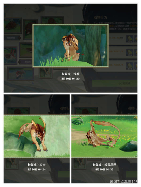 第二种 长鬃虎 需要拍摄(蹲下洗脸,戏弄尾巴,攻击)三种照片 如图所示,我们传送到这里