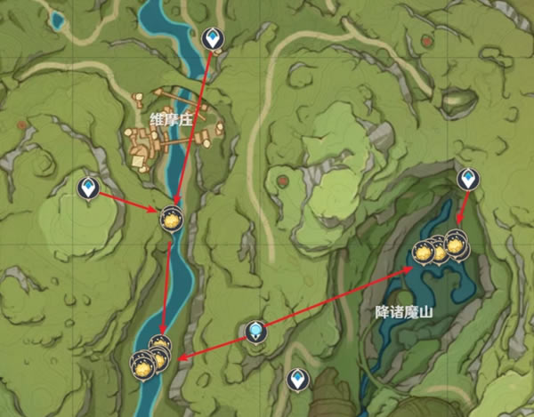 《原神》是由上海米哈游网络科技股份有限公司制作发行的一款开放世界冒险游戏,于2017年1月底立项,原初测试于2019年6月21日开启,再临测试于2020年3月19日开启,启程测试于2020年6月11日开启,PC版技术性开放测试于9月15日开启,公测于2020年9月28日开启。 原神中月莲是提纳里的突破材料之一,部分玩家可能还不清楚月莲在哪可以找到,下面一起来看看原神月莲收集路线推荐吧。 原神月莲收集路线推荐 小tip:队伍里带提纳里可以在小地图显示须弥特产的位置。 月莲生长在水域里,带绫华或莫娜可以加快收集效率。 1.离渡谷(9个)