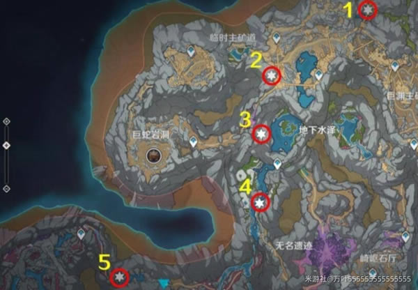 来到地下矿区勘探队营地,可以看到一个站着的学者——海迪夫 首先来到荧光狭道,采摘八朵星蕈,与海迪夫对话,接取任务:奇怪的蘑菇,将把八朵星蕈全部交给他,完成任务 接着,在开启地图的任务中,我们曾经拍到过一张奇怪的照片,与海迪夫对话,接取任务奇怪的岩石照片,来到图中这五个位置