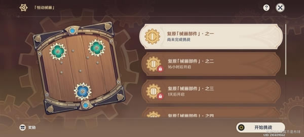 (PS:同型号齿轮没有区别,活动内只是显示可使用数量) 恒动械画第一天解密方法: 1号位:中齿轮 2号位:小齿轮 4号位:大齿轮 6号位:中齿轮