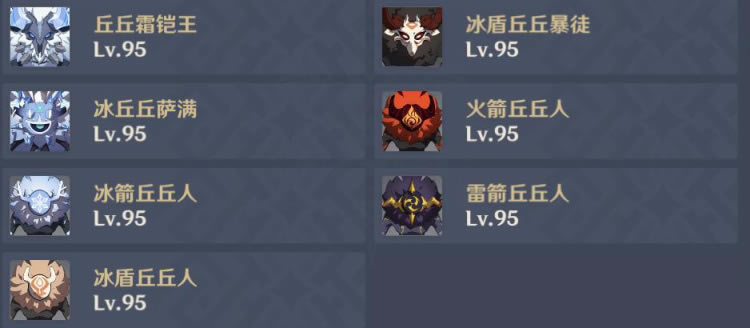 有个冰铠王和冰盾丘丘人,建议带个火。 小怪多,建议带一个风系聚怪。 第二间