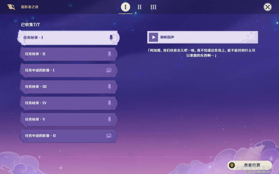 注意:密录Ⅱ(需要爬山),任务中途的影像Ⅲ(山上传送点旁边),中央营地的影像Ⅰ(山上) 个人建议:需要爬山的先到高处寻找,然后在往下探索。这样子比较不会错过。 点位图: