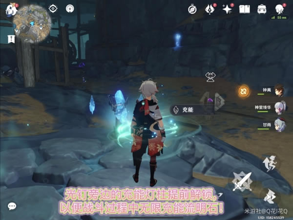 第三步:找到光钉旁边的充能灯柱,解锁后可以无限充能! 此外队伍方面:我觉得需要火、岩、我带了班尼特,可以破冰史莱姆盾又可以加血,钟离打岩史莱姆,或者双手剑也可以破盾!万叶和神里是我队伍里的的一直不会更换的角色!