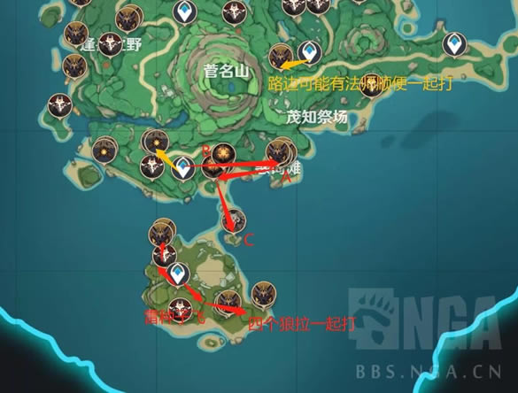 ABC代表同一组怪在不同的日子会在不同的位置(3天1循环)