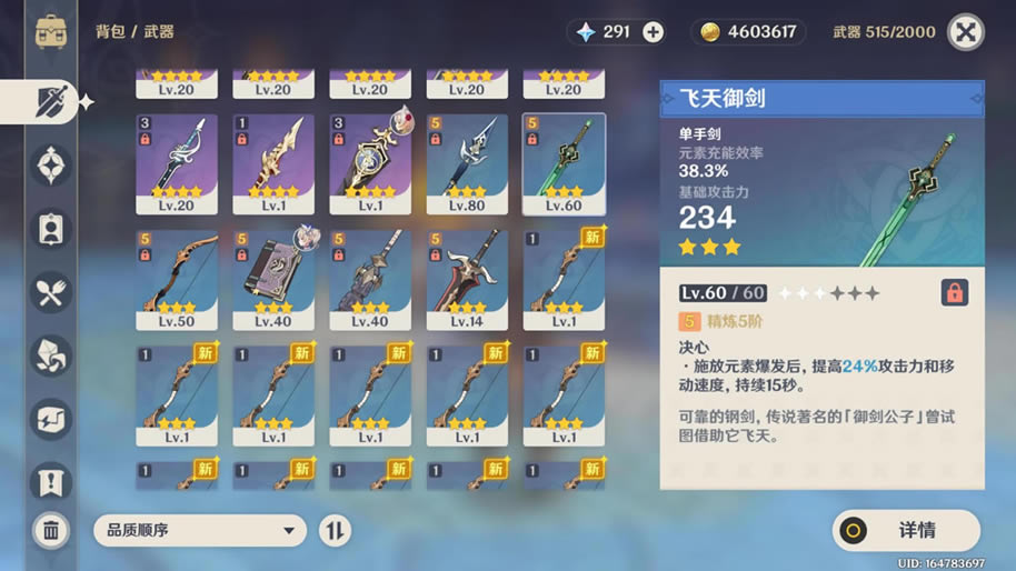 飞天御剑:琴、凯亚、神里绫华、七七、班尼特、行秋均可在萌新期过渡使用。