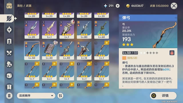 弹弓:甘雨、安柏、菲谢尔、达达利亚可在萌新期过渡使用。