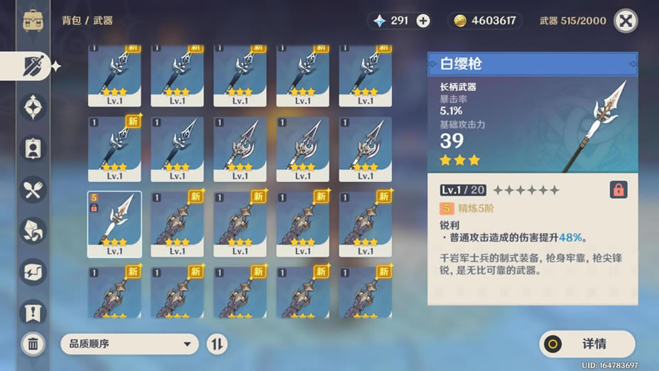 白缨枪:胡桃、魈、钟离、香菱、罗莎莉亚均可拿来过渡。