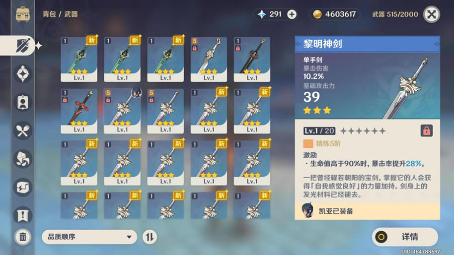 黎明神剑:阿贝多毕业剑,同时可以给所有非站场的单手剑角色过渡使用