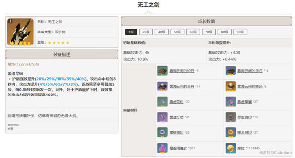 无工之剑副词条为攻击力百分比,因此天生不适合女仆、荒泷一斗等这些不太依赖面板攻击力的角色。由于无工之剑的被动需要有护盾才能叠满,因此只有携带了护盾角色的情况下,无工之剑的伤害期望才能达到最高,这导致了其泛用性没有那么高。常见主C中,优菈和雷泽是可以绑定钟离或者迪奥娜的护盾出场的,因此可以吃满无工之剑的被动。迪卢克的队伍里一般是不会携带护盾角色的,因此不如狼末,不过也还不错。辛焱倒是自带护盾,而且输出也需要攻击力,因此还算比较契合,但是辛焱主C的使用者非常少。 需要注意的是,无工之剑的护盾叠层在角色退场8秒之后就会失效,因此北斗这类脱手副C不太契合无工之剑。虽然北斗的大招是锁面板的,但是如果让北斗在场上把无工的层数叠满了之后再退场,就浪费了太多的输出时间,反而是得不偿失了。 四星武器 在介绍四星武器之前,首先要说明,不建议专门为了某一把四星武器而去抽武器池,概率太低了;等着慢慢歪出来就好。
