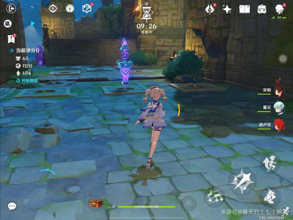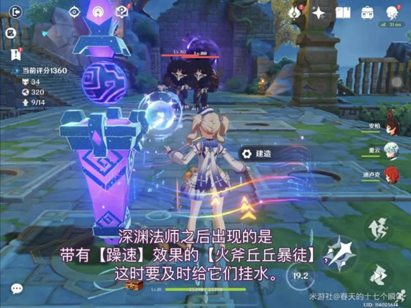 开始的时候可以挂机休息一会,等到出现冰深渊法师的时候,需要我们用火来破盾。 之后,需要给带【躁速】效果的【火斧丘丘暴徒】挂水。