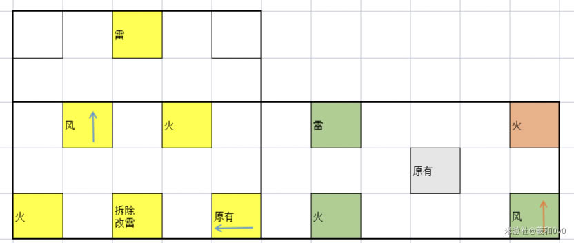 来到下方平台建设时间: 1.黄色代表第一次需要建的机关 除去原有的风元素机关(需改为向左),第一次需要新建5个机关 2.开始后站在高地靠近敌人出现出的机关,第一个史莱姆进入后操作机关,之后移动到第二个机关处在进行操作。再移动到第一个机关处来回以此类推 3.等到第一波的三个史莱姆打完后 (此时应该钱数到达300,且操作完离出口近的机关) 快速跑的绿色背景所示处新建三个机关 3.5红色背景机关有时间就建 (如果没建可能会导致漏掉一个深渊法师,看情况带水和冰的角色冻住) 4.继续前后操纵机关栈道,将上方怪物弄掉 龙蜥漏会发生在这一步,在后方弄掉遗迹重机后,可能来不及去到前面的机关操纵。 本次分享游戏《原神》攻略。 |