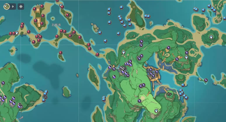 推荐地点 「踏鞴砂」与「名椎滩」处拥有着大量稻妻的区域特产,在此区域拍照的话能快速的完成任务。