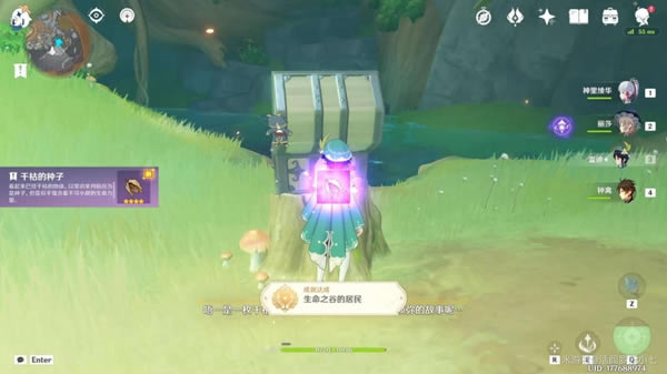 都触碰后元素方碑也就都解锁了,切换出岩、雷、风角色,激活元素方碑,宝箱也就解锁了。打开宝箱就可以完成隐藏成就:生命之谷的居民。