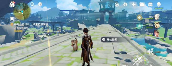 首先,根据任务指引,来到指定地点,与吉法师对话并且拍照