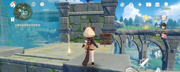 然后根据任务指引前进,最终到达风龙废墟最高点