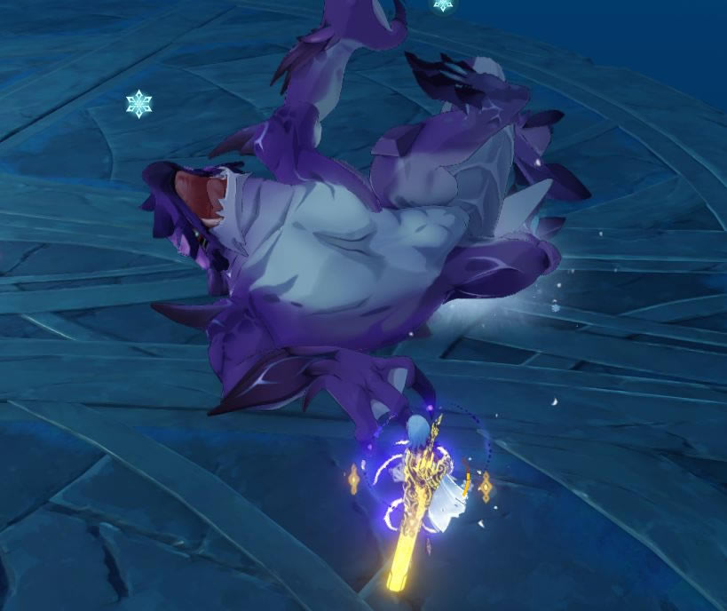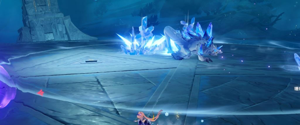 冰龙蜥会留在地面,使用小技能战斗,因为没什么可多说的,所以折叠一下 龙蜥将头扎入地面,汲取力量,随后翻身将尾巴插入地面,形成一个大范围的领域,连发冰刺造成伤害,该技能不怎么好躲,但伤害也不高,可以硬抗,硬要躲可以在他埋头充电时快速跑开