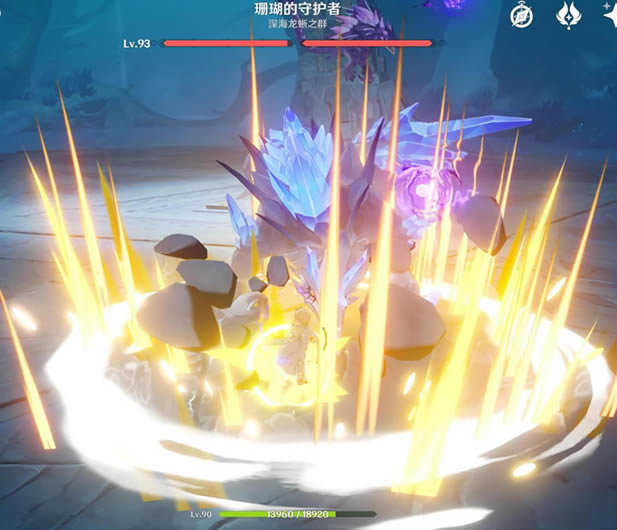 总结,注意躲避涤魔喷吐可以让战斗轻松很多,可以考虑全力输出地上的冰龙蜥,并与墙上的雷龙蜥拉远距离,方便躲避,把冰龙蜥打到空血,这样会强制把雷龙蜥从墙上拽下来发动合击技,此后冰龙蜥退场,雷龙蜥固定在地面战斗就不会上墙了,可以慢慢解决,甚至不需要你去破坏墙体 如果阵容爆发力足够强的话,可以在开场他们使用冰雷弹体连发时对其造成大量伤害,然后在雷龙蜥上墙之后,破坏墙体使其虚弱,然后用大额爆发伤害同时秒掉两只龙蜥,同时击杀两只龙蜥不会触发合击光束 但是要注意的是,如果破坏墙体后,没能在一轮虚弱里把一只龙蜥打空血,他们就会重复开场动作,双重涤魔喷吐+跳到场地另一边+冰雷弹体连打,因为他们跳来跳去的,会浪费不少时间... ? 关于岩造物 ... 除了璇玑屏外,荒星之类的岩造物也可以阻挡涤魔喷吐和连发的冰雷弹体,虽然因为比较小 而且荒星也会挡自己技能 所以实战效果一般,另外值得一提的是,和黄金王兽的光束技能不同,双子龙的合击光束无法被岩造物阻挡