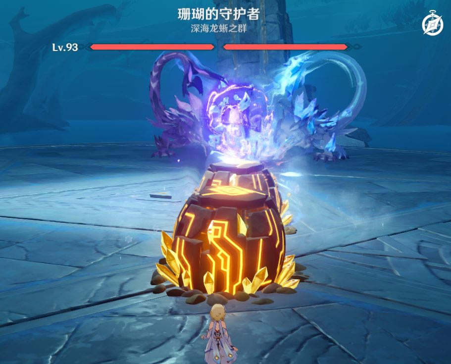 还没完,随后两个龙蜥会跳跃到地图另一边(非常远...),将尾巴组成一个心形,发射大量冰元素和雷元素弹体,该技能只要保持距离很容易躲,有一定的伤害和打断力,但是并不高,即使是心海水平的抗打断也可以硬吃这个技能,同时,这个技能时龙蜥是靠近且不动的,可以考虑用盾或者霸体+奶硬顶着这个技能输出