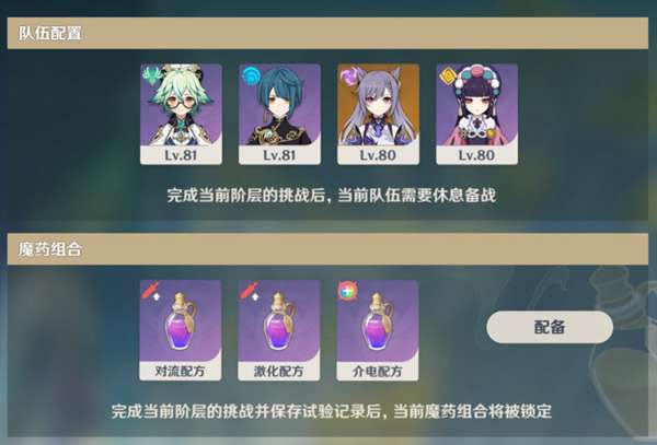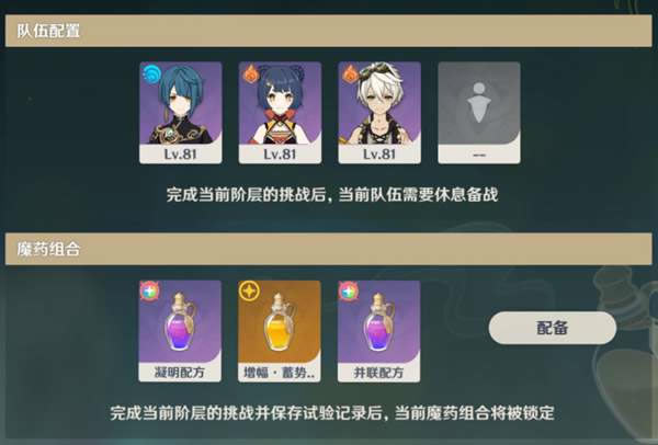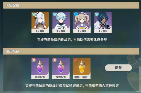《原神》是由上海米哈游网络科技股份有限公司制作发行的一款开放世界冒险游戏,于2017年1月底立项,原初测试于2019年6月21日开启,再临测试于2020年3月19日开启,启程测试于2020年6月11日开启,PC版技术性开放测试于9月15日开启,公测于2020年9月28日开启。 原神魔药研析二阶段已经开启,一些低练度的玩家可能不太会打,下面一起来看看原神魔药研析二阶段低练度满奖励打法详解吧。 原神魔药研析二阶段低练度满奖励打法详解 首先先把玩法说下: 1、挑战会随着层数的增加加大难度(与深渊一致) 2、每层可编入4个角色,试用角色无法与已拥有角色产生共鸣,挑战完成后,当前角色进入‘休息’状态,在一层结束后可以重新出战 3、每个出战队伍可以携带三瓶‘魔药’,其中一层使用后,后面层就不可使用该‘魔药’ 接下来是具体配置: 个人觉得第二关较难,其余较为容易一些,建议将主力放在第二层中 这里所说的是最低配置需要的打法,可以根据你所拥有的角色自由补充队伍 难度:全为积分倍率x2.5 第一层: