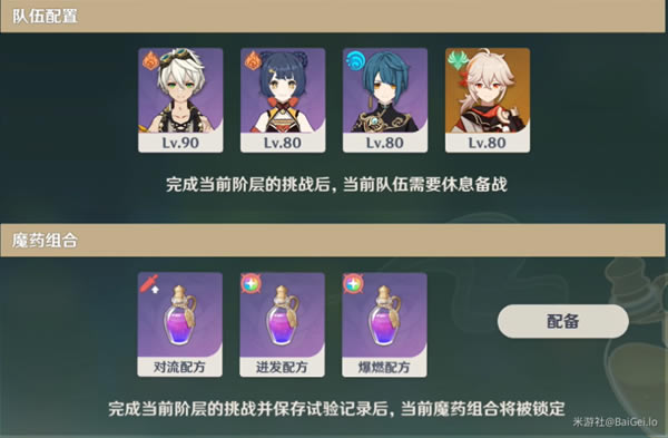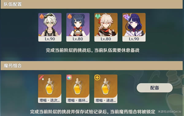 <第二阶层·上调剂量>队伍+魔药配置参考 第二阶层挑战时尽量携带一个可以破盾的角色,比如大剑角色或者直接用云蓳(云蓳破盾一般)