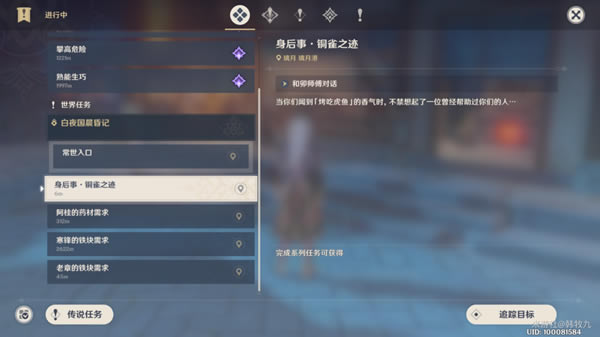 原神身后事系列任务攻略 身后事系列任务包括: 「身后事·铜雀之迹」 「身后事·诸事平安」 「身后事·归于山中」 一、身后事·铜雀之迹 任务流程 完成魔神任务「风起鹤归」的旅行者,第二天去璃月港卯师傅周围就能直接接到任务。 (没接到的旅行者应该就是没有完成魔神任务「风起鹤归」,或者是完成了但没到第二天。)