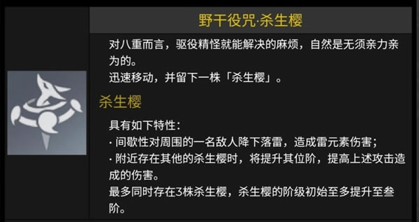 谈命座前,我们先来看看为什么命座全是关于杀生樱的,零命的杀生樱一开始可以储存三个,类似于魈,冷却9秒,持续14秒。周围存在一个杀生樱就提高一阶伤害,零命最多三阶,而六命解锁四阶,杀生樱也只能存在三个。这意味着杀生樱以及大招的时间轴将会是八重这个角色的重点,所以命座和天赋都与杀生樱有关。我觉得时间轴这个东西,我一时半会没办法给出太精确的数据,因为涉及了大招22秒,杀生樱冷却和持续时间,同时天赋和命座还会减cd,有点复杂。但是可以看得出零命肯定操作流程会被卡,这让我想起了零命优菈和二命优菈对于苍白四件套的区别。