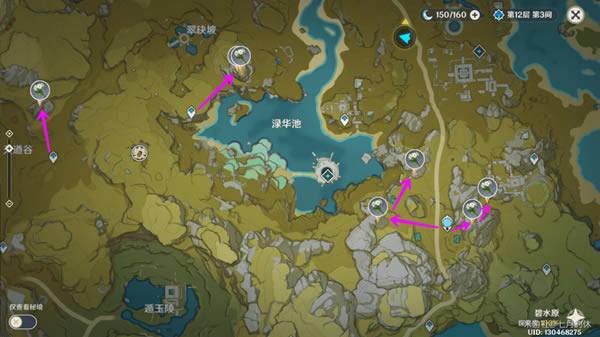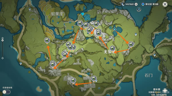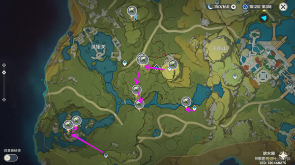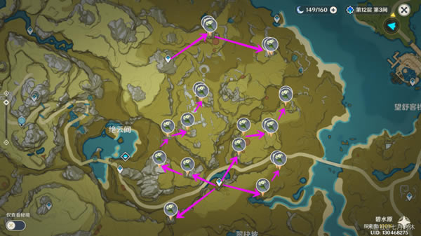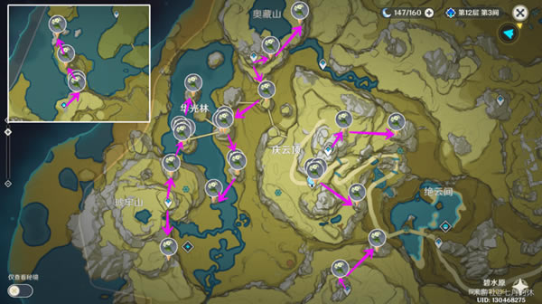 采集路线(99颗) 清心多位于山顶位置,需要攀爬高处,强烈建议吃降低攀爬体力消耗的食物!