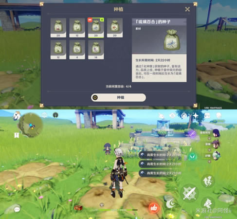 ★尘歌壶种植 众所周知尘歌壶中可以种植部分材料,如图所示琉璃百合可种植,生长时间需要70小时