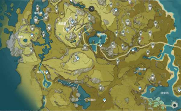 2、石珀(钟离、重云突破材料) 大致位置如下(共142个): 推荐使用凝光可莉钟离以及大剑角色采取石珀