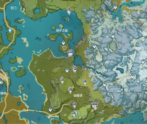 5、夜泊石(北斗、烟绯突破材料) 大致位置如下(共46个): 推荐使用凝光可莉钟离以及大剑角色采取夜泊石