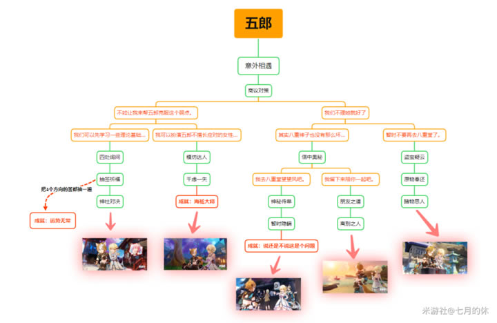 邀约类【隐藏成就】共4个+显示成就2个 需完成2.3版本新增的【邀约事件】:北斗、五郎,即可获取。 (五郎) 【运势无常】+【说还是不说,这是个问题】是隐藏成就! 【海祗大将】是显示成就,解锁全部5个结局即可获得!