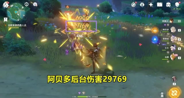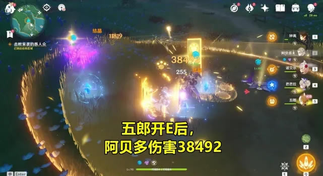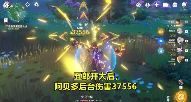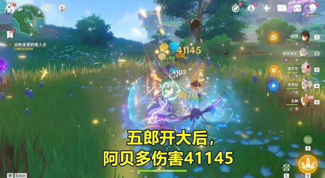 钟离开启护盾减抗后,阿贝多开启E技能,随即换人打输出,触发阿贝多E技能伤害为29769。 同样条件下,钟离开盾减抗,五郎开启大招后,阿贝多开启E技能后,换人打输出触发阿贝多E技能伤害为37556。 实际伤害提升7787点,伤害提升幅度为26.1%。